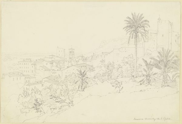 Curator: So ethereal! It’s almost as if the whole scene is exhaling, a whisper of landscape held on paper. Editor: It’s lighter than I expected; looking at “Blick auf den Pan de Guajaibón auf Kuba,” from 1852 by Adolf Hoeffler, I find it striking how humble the materials are—graphite and pencil on paper—given the grand scale of the vista he captures. Curator: Exactly! It’s a lesson, really, that impact isn’t about grandeur or extravagance. Think about how he must have wrestled with the landscape before translating it into this medium. The work required, perhaps? The struggle of portraying land? Editor: Well, the romantic ideal certainly suggests a wrestling of sorts. But it's worth remembering the pencil itself. Where did it come from? The graphite mines, the wood... that landscape translated also represents extraction. How do we see romanticism through the labor of the materials, what resources were required? Curator: Hmm, that adds another dimension, doesn't it? There's a certain wistful quality, this feeling of immense natural space rendered in delicate strokes. The mountain in the distance seems like a memory more than a solid form, as the crown that touches the sky is far in the distance. Perhaps the artist wants the viewer to interpret the vast amount of untouched land? Editor: Or consider the consumer. The finished drawing could find its way back to Europe, reinforcing ideas of exotic locales while glossing over colonial realities. It's romantic consumption at work. This drawing, then, as more than aesthetic pleasure. Curator: You know, for a landscape seemingly captured on the spot, it invites an abundance of thought. There's a longing imbued in this sketch. It feels less like a topographical record and more like a tender farewell to the landscape. Editor: Agreed, this landscape transcends simple visual enjoyment, especially after a second look at its complex relationship to industrial resources and empire building of the era. Thanks, I appreciated the conversation! Curator: My pleasure. Looking at it with you made me reflect about art and its ability to evoke all ranges of reflection, it almost moves my spirit.