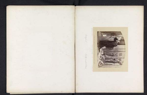 Curator: I find this gelatin-silver print, taken before 1868 and attributed to Ludwig Angerer, strangely unsettling. The photographic reproduction of a drawing shows a gathering in a garden gazing at a streak of light. It feels posed, unnatural. Editor: But it's also captivating! The contrast of the soft, blurred landscape with that crisp, bright light is almost surreal. There’s an eerie formalism to it, with the figures arranged just so to direct our gaze. Curator: Eerie indeed. I'm immediately drawn to how the photographic process transforms the original drawing. Look at the texture. The paper grain, the chemical interactions—it’s less about the depicted scene and more about how the materials shape our perception. Editor: Yes, the materiality is crucial here. Think about the labor involved: the draughtsman creating the original image, then the photographer, Angerer, reinterpreting it through his own medium, each hand impacting the final result. What strikes me is the interplay of production and representation of light here. It asks us: where did the original artwork originate and from whose perspective do we see it? Curator: And the choices within that process! The printing itself becomes an act of creation, imbued with intention. The photographer isn't merely copying but re-framing, editing reality through this chemical lens. Editor: Absolutely. These were crafted objects, even reproductions. Each print was individually produced; a chemical bath and manual manipulation would lend it uniqueness that mass-produced copies lack today. It challenges the boundaries between craft and technology, wouldn't you say? Curator: I do agree that it forces one to reassess rigid distinctions within the art world. Aesthetically speaking, the composition creates this push and pull between the idyllic garden scene and that otherworldly streak of light, that one single, focused moment disrupting all pastoral normalcy. Editor: Thinking about it from a material standpoint really enriches the reading. It highlights labor, choices and processes behind what seems to be a pastoral, tranquil snapshot. It certainly invites more questions than it answers. Curator: I will ponder over it some more.