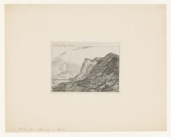 Emilie Rolin-Jacquemijns made this print of Lake Geneva at Saint-Gingolph using etching techniques sometime in the late 19th century. The scene reflects a growing interest in landscape as a subject in its own right, a departure from its use as mere backdrop to historical or mythological narratives. Prints like these gained popularity in the 19th century due to advances in reproductive technologies and the rise of a middle class with disposable income and leisure time. Such landscapes were not just records of place; they spoke to emerging ideas about national identity and the sublime power of nature. Switzerland, with its dramatic mountains and serene lakes, became a key site for this kind of imagery. Prints were collected in albums and displayed in homes, shaping perceptions and reinforcing cultural values. Art historians examine such images in the context of travel, leisure, and the promotion of national image, often using sources like travel guides, exhibition catalogs, and personal correspondence to shed light on their cultural significance.