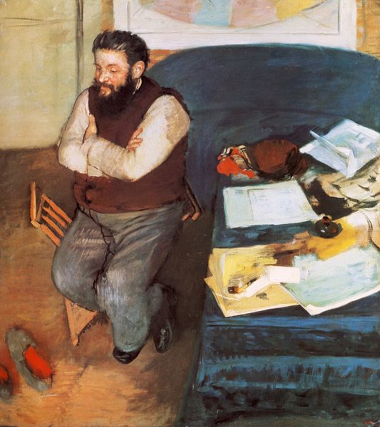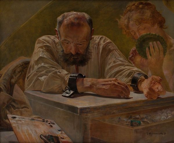 Oleksa Novakivskyi made "Lost Hopes," a painting of quiet sorrow, using earth tones and soft brushstrokes. The palette feels like it's been mixed from mud and clay, which gives it this grounded, almost mournful quality. You can sense Novakivskyi feeling his way through the painting, each stroke deliberate yet yielding to the overall mood. Look closely, and you'll see how the texture builds up. The paint isn't slick or showy; it's matte and heavy. The way the light catches on the man's beard, those little dabs of brown and grey, it's like he's trying to capture a fleeting moment, the weight of unspoken grief. The edge of the woman's headscarf, that bright red thread seems to punctuate the scene, drawing your eyes to the heart of the piece, and suggesting a deeper sense of tragedy and loss. This piece has something of the Dutch Masters about it, that dark and brooding mood. Like a Rembrandt, but folksier, more immediate. It is a reminder that art doesn't always have to shout, sometimes, the most powerful statements are whispered.