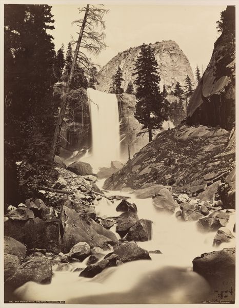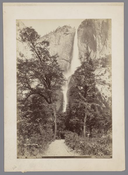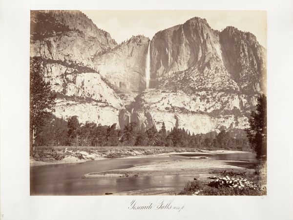 Carleton Watkins made this albumen print, "Bridal Veil Fall, 940 feet, Yosemite," during a time of significant westward expansion in the United States. Watkins's photographs played a crucial role in shaping perceptions and promoting settlement of the American West. His work invites us to consider the complex relationship between landscape, representation, and power. Watkins's sublime and picturesque depictions of Yosemite contributed to the myth of untouched wilderness, even as the presence of Native peoples was systematically erased. The photograph also suggests questions about gender and representation. The waterfall's title, "Bridal Veil," evokes purity and femininity, projecting a gendered narrative onto the landscape. It’s fascinating how Watkins invites us to see the land itself as feminine, ripe for claiming and possessing. Watkins's work speaks to the intertwined histories of environmentalism, colonialism, and the construction of American identity, capturing the emotional resonance of a landscape laden with cultural and historical significance.