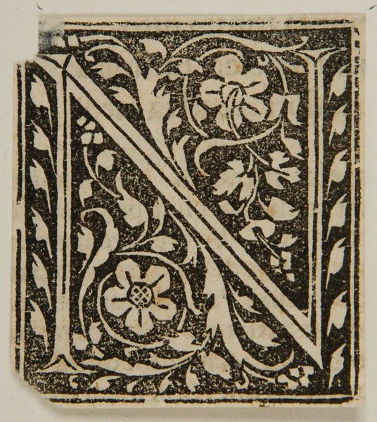 Editor: So, this is "Letter E," by an anonymous artist. It's currently residing at the Harvard Art Museums. It feels so...contained, but still organic with all the leaves. What do you see in this piece? Curator: It's quite charming, isn't it? I see a dialogue between order and chaos. The rigid form of the letter 'E' is softened, almost overtaken, by the natural world. It makes me wonder, what is the artist trying to tell us about the power of nature versus the constraints of language? Editor: That's fascinating! I hadn't considered the tension between those two elements. Curator: Perhaps it’s a reminder that even within the most structured systems, there's always room for growth and wildness. I love the idea. Editor: I'll definitely look at it differently now. Thanks! Curator: My pleasure. Art is about seeing, and feeling, after all.