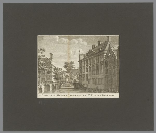 Curator: This print offers us a fascinating look at Amsterdam in the late 18th century, somewhere between 1770 and 1783, by Hermanus Petrus Schouten. Its subject is a view of the Dolhuis, what we would now call an asylum, and the gate to the East India House on the Kloveniersburgwal. Editor: It feels so...composed, so balanced. There's a clear division between the looming building on the left and the more open cityscape unfolding to the right. And everything is rendered with such incredible detail, the trees, the figures... it’s as though all the social tensions are on parade. Curator: Absolutely, that division you mention speaks volumes. The stark facade of the building hints at Dutch wealth and expansion during the Golden Age, and Schouten is careful to balance that image against the daily happenings on the street, the ordinary world next to colonial administration. Editor: The very name, "Dolhuis," it's so evocative. I'm struck by how this image juxtaposes the public face of prosperity with hints of societal issues, placing the asylum beside symbols of global commerce. Does this connection hint at anything deeper? Is there an implicit judgment of one against the other? Curator: That is exactly what Schouten is encouraging us to ask. It is important to recall that the Dutch Golden Age brought about rapid commercial expansion, yet at the cost of immense inequality. Editor: Seeing this contrast makes me question the price of progress, that constant dance between the "sane" world of commerce and the "insane" world that society often tries to hide. The image's symbolism definitely carries a powerful commentary. Curator: Indeed. The placement of these buildings within the cityscape wasn't arbitrary. The Dolhuis would have been a stark reminder of the human cost associated with rapid societal change and the complex underbelly of commercial triumph. Editor: Looking at this, it feels like stepping back in time, seeing the roots of present issues still echoing. Curator: Yes, Schouten's print is not just a pretty picture, it's a powerful commentary on the contradictions inherent in a society grappling with immense wealth and societal challenges. It makes one ponder how public buildings were consciously or unconsciously used to make societal statements.