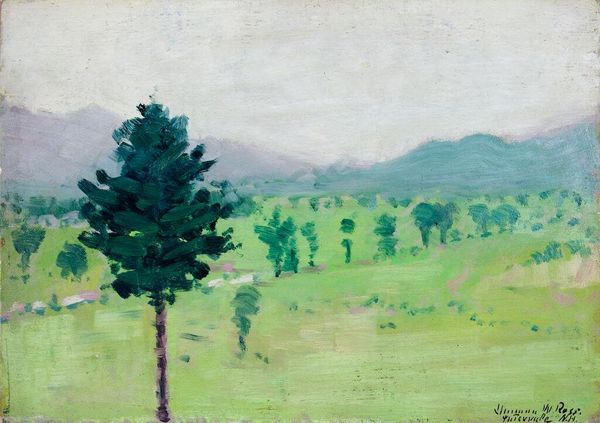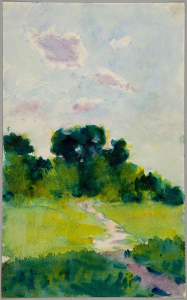 Curator: Sir Roger De Grey, whose life spanned much of the 20th century, painted this landscape, titled "Wrotham Hill." Doesn't it just draw you in? Editor: It does, but there's a tension. The verdant shades and blurred edges create a sense of idyllic nature, almost inviting, yet the thickness of the paint also feels like a barrier, as if we're not meant to trespass. Curator: I see what you mean. De Grey often used these layered, almost abstract forms. It's as if he's trying to capture not just the scene, but the feeling of being in it, the weight of the leaves, the humid air. Editor: It's interesting to consider this artwork in light of contemporary environmental concerns. Does this romantic vision of nature hold up when we consider issues of access, preservation, and the ongoing ecological crisis? Curator: That's a potent question. Perhaps De Grey unconsciously hints at that inaccessibility, suggesting the need to protect these spaces from intrusion, even by the viewer. It's a reminder that beauty comes with responsibility. Editor: Yes, and that we need to continually question how nature is framed and consumed. Curator: Food for thought.