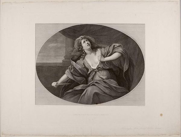 Editor: This is "Poesia" by George Jakob Felsing, held at the Harvard Art Museums. The figure has such a serene presence, and the monochromatic rendering feels so delicate. What strikes you when you view this piece? Curator: Let's think about how Felsing made this. The printmaking process involves tools, labor, and a deliberate manipulation of materials. It's not just about divine inspiration; it's about the means of production. What does the mass production of images like this do for poetry? Editor: That's an interesting point. How does this influence our understanding of artistic labor? Curator: It challenges the romantic notion of the solitary genius. Art becomes a product, subject to social and economic forces, and the consumer of the image is now part of this poem. Editor: Fascinating! I never considered that perspective before. Curator: Seeing art through the lens of its material origins can really change how we value it.