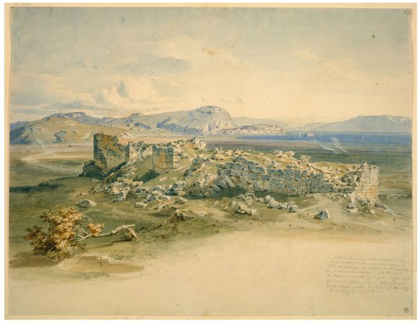 Carl Rottmann created this watercolor painting of the Lion Gate in Mycenae during the early to mid-19th century. Rottmann’s focus on ancient Greek architecture coincided with a broader European fascination with classical antiquity. The image emphasizes the ruinous state of the gate, reflecting the passage of time and the decline of ancient civilizations. This interest in ruins and the sublime was also a key theme in Romanticism, a movement that shaped much of the art of the period. Germany, where Rottmann spent his career, saw the rise of museums and academic institutions that aimed to collect, study, and preserve classical artifacts. Rottmann’s painting should be considered in this context, as it embodies a desire to document and revive the legacy of ancient Greece. Understanding the painting requires research into the archaeological discoveries of the time, travelogues, and the history of classical studies within European institutions. Only then can we grasp the cultural and historical significance of Rottmann's work.