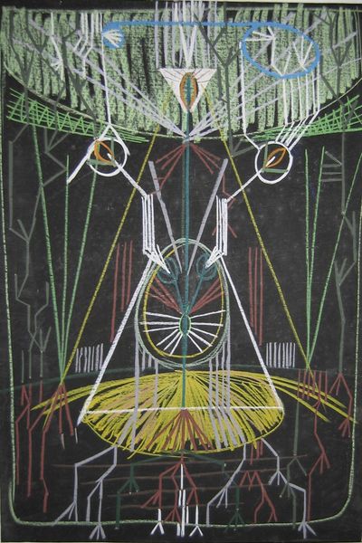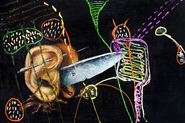 Alexander Roitburd made The Garden of Earthly Pleasures in oil, and right away you can see he’s laying down some juicy strokes and letting the colours sing against this ground of deep black. I love the surface of this painting, which feels worked over, raw and unresolved. Look how the figures seem to emerge out of this darkness, formed from thick daubs of paint. Then there’s the marks he makes with lines of bright, almost neon colours. See how they sit on top of the forms, like glowing wires? The whole thing feels intuitive and improvisational. The ladder is especially good – not just as an object but as a series of marks, each one distinct and uneven. For me, Roitburd’s work shares a restless curiosity with artists like Francis Picabia, who also threw everything at the canvas to see what might happen. Painting is all about trying things out, embracing the mess, and letting the unexpected guide you.