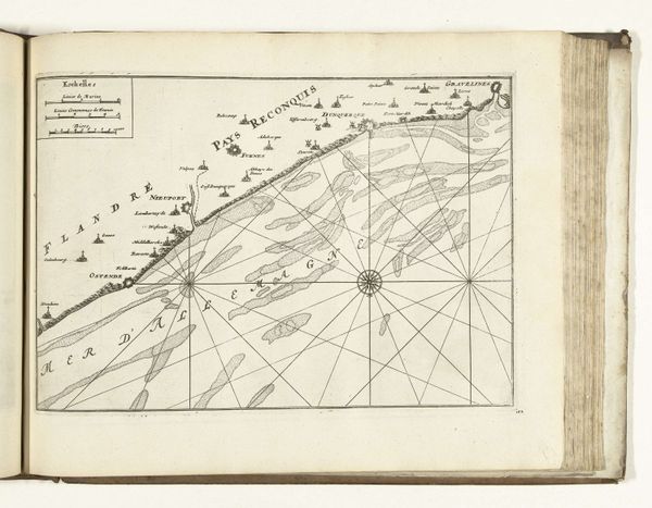 Curator: We're looking at "Kaart van een deel van de kust van Algerije en een gezicht op Algiers," dating roughly from 1726 to 1766, and crafted by Hendrik de Leth. It’s a print composed using etching and engraving techniques on paper. Editor: My first impression is of precision met imagination. The coastal map feels very deliberate and calculated, but the cityscape view is softer, more atmospheric. Like a cartographer dreaming. Curator: Indeed. The work's structured duality invites a semiotic reading, contrasting empirical observation, rendered through meticulously etched lines, with an almost picturesque representation of Algiers. Note the perspectival accuracy in both elements. Editor: It makes me think about seeing versus knowing. The map is the knowing—all angles and data. But the cityscape, that's the seeing. That's someone standing there, feeling the light, watching the ships bob. I bet the air smelled salty. Curator: An interesting distinction. From a formal perspective, the composition creates a clear hierarchy, placing the topographical representation in a dominant position, underscoring the map’s functional primacy. The visual syntax privileges objective geographical data over subjective experience. Editor: Maybe, but it also hints at narrative. The ships sailing into the harbor are on a voyage, and this work becomes both document and promise. I see a story waiting to happen. Does that make sense, or am I getting carried away? Curator: Narrative interpretations are valid avenues for exploration, provided we anchor them within the print’s material context and the artist’s technical approach. We must remain conscious of the limitations of projecting contemporary narrative sensibilities onto historical artifacts. Editor: True. Though for me, an artwork has to breathe. Hendrik de Leth has frozen a little bit of life here in monochrome. Both fact and fancy! Curator: Precisely. It offers a complex layering of information and artistry. Thank you for this interesting, if characteristically spirited, contribution! Editor: Always a pleasure. This print has given me a little taste of Algeria, maybe time for some fresh air!
