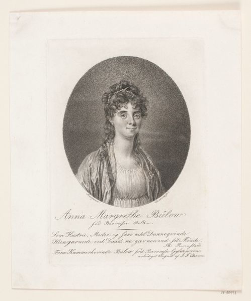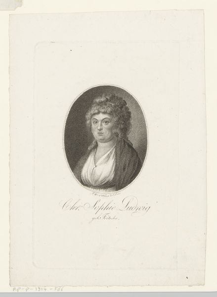 Editor: Here we have Nicolas Henri Jacob’s "Portrait of Élisabeth-Sophie Chéron", made sometime between 1825 and 1827. It's an engraving – looks like pencil on paper. It has a certain lightness to it, almost like a fleeting memory. What strikes you most when you look at this portrait? Curator: You know, it’s funny you mention “lightness”. It almost floats off the page, doesn't it? For me, this engraving whispers of Neoclassical ideals, but with a touch of vulnerability. There's this crispness in the lines that defines her features, almost architectural. But look closer - do you see the slight softness around the eyes? Editor: I do now! It's subtle, but it makes her feel more real, less like a marble statue. Curator: Exactly! It's a clever dance between the ideal and the individual. Jacob's really captured that era's fascination with both. This wasn’t just a depiction of a person, but an encapsulation of her perceived virtues. One wonders if that's why she has this slight sense of pensiveness. Editor: So, it's a blend of objective representation and subjective interpretation? Curator: Precisely. What do you think it tells us about the sitter, Élisabeth-Sophie Chéron? Editor: I imagine that she was maybe known for both her beauty and intellect, given how Jacob merged those sharp, "intellectual" lines with the softer, more traditionally "beautiful" features. Curator: A wonderful observation. It makes you wonder how many layers an artist adds when immortalizing their subject. It goes beyond the skill, don't you think? There is almost something magical. Editor: Definitely food for thought. I guess there's always more to see than meets the eye.
