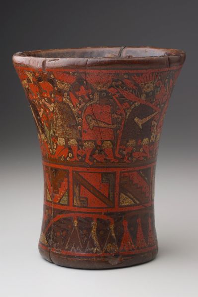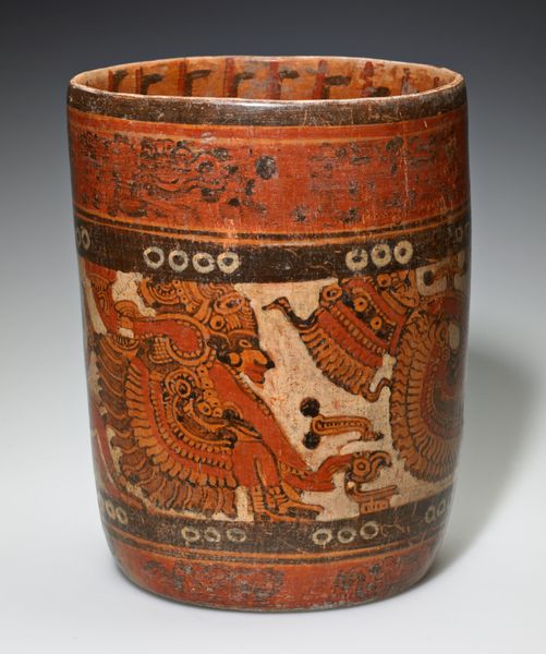 This ceramic beaker, crafted by the Nazca people, is adorned with abstract birds, serpents, and other figures. These symbols offer a window into the Nazca worldview, where nature and the supernatural were deeply intertwined. The bird motifs may represent a connection to the sky and spiritual realms, while serpents, often associated with water and fertility, evoke the earth's life-giving forces. Consider how similar animal motifs appear across cultures. For instance, the serpent, a universal symbol, appears in ancient Greek mythology as a guardian of sacred spaces, and in Hindu traditions as a symbol of cosmic energy. Here, the Nazca serpent, alongside the birds, highlights a fundamental human impulse to find meaning in the natural world. These symbols, though geographically and culturally distinct, tap into a collective memory, revealing our shared psychological need to understand our place in the cosmos.