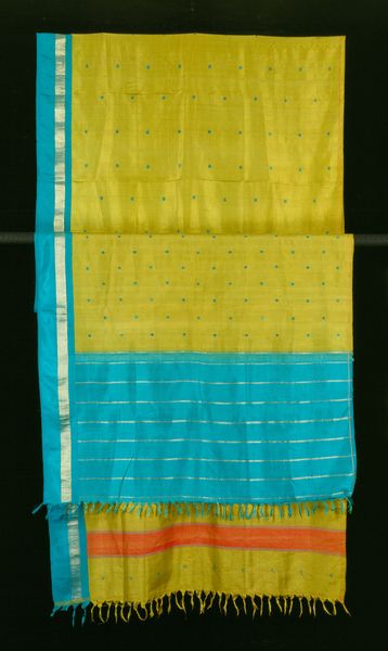 This 'Head Covering' was crafted by an anonymous artist, and what strikes me is the beautiful, almost meditative, process of its making. The deep black is punctuated by an intricate pattern of tiny orange dots, like stars in the night sky, it's a universe unfolding. Looking closely, the texture is alive with subtle variations; you can almost feel the rhythm of the hand that created it. The way the colors interact, the warm oranges against the cool blacks, creates a visual vibration that is both calming and energizing. There's a stripe of green that interjects and surprises. It’s kind of like one rogue thought in an otherwise very patterned mind. This piece reminds me a little of the work of Gee's Bend quilters, these artists shared a similar focus on color, pattern, and the beauty of handmade objects. Like those quilts, this head covering invites us to consider the power of art to transform everyday materials into something truly extraordinary, something that speaks to the soul.