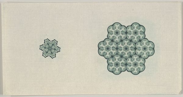 Curator: This delicate piece, held at The Metropolitan Museum of Art, is titled "Sheet with overall pattern of hexagonal shapes." Created anonymously sometime between 1800 and 1900, it’s a drawing, a print, a textile, and paper all combined. Editor: My initial reaction is this is a repeating pattern evoking honeycomb, a sense of orderly construction on a humble material that bears visible signs of age. It looks like something that once adorned another surface and later peeled off it. Curator: It is so interesting you mention honeycomb. The hexagon, that incredibly stable and space-efficient form, echoes throughout history and human consciousness. In many cultures, the symbol of the hive is often viewed as representative of community, productivity, and, some might even say, immortality. Editor: Fascinating, given the probable function. Considering its potential application as textile design, the pattern becomes a testament to repetitive labor—both in its creation and, potentially, its application in clothing, household décor. This humble drawing holds encoded within it countless hours of work, likely by unnamed artisans. Curator: Precisely. We should also reflect on the colors. Those subtle earth tones evoke nostalgia and familiarity. They are almost imprinted in our subconscious, mirroring ancient symbols of home, perhaps? Even the small imperfections and damage we see along the top edge contribute to its emotional weight, giving us a hint of previous history. Editor: Indeed. And in seeing how such modest materials were used for pattern-making, it reveals much about aesthetic economies from 19th century life; an embrace of visual pleasure without the extravagant costs of dyes and high-end textiles. Curator: Agreed. In this seemingly simple textile design lies a nexus point—where geometry, culture, material history, and collective memory intertwine. Editor: The hexagon is an emblem not just of pattern-making, but it whispers of an industrious past that still holds sway through its geometry and worn materials.