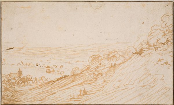 Editor: We're looking at "View of Crayenhof Castle at Zwijndrecht" from 1606, a watercolor and pencil drawing by Peter Paul Rubens. It's mostly in muted tones, blues, browns and greens. What strikes me is the rather tranquil, yet slightly melancholic mood evoked by the overcast sky and bare trees. What stands out to you? Curator: Notice how Rubens uses watercolor and pencil to create not just a scene, but a feeling of place steeped in memory. Castles, especially in the Baroque era, often served as symbols of power, history, and cultural identity. What memories, what narratives might Crayenhof Castle have held for Rubens, or his intended audience? Editor: So, the castle isn’t just a building. It carries stories. Curator: Exactly. And consider the landscape itself. The bare trees, the subdued colors. Rubens perhaps suggests a specific time of year – late autumn, or early spring – periods of transition. Transition mirroring political change and religious conflict happening at the time in the Netherlands. The image reflects this atmosphere. Editor: How would an audience at the time understand all these cultural and political undertones? Curator: Viewers were keenly attuned to visual symbols, understanding the weight of historical context. They were trained to 'read' landscapes, to decipher the emblems embedded within them. It allowed them to perceive layers of meaning. Think of it like recognizing instantly what particular emojis mean today! Editor: That makes a lot of sense. I never considered how clued-in people were back then. Curator: It shows the powerful influence landscape imagery could have! Rubens isn't just portraying a physical place; he's capturing its cultural soul and the spirit of the times. Editor: Seeing it that way really makes you think about what "home" means. Thanks for illuminating it for me. Curator: And thank you for looking deeper and recognizing the enduring power of symbols to convey meaning across time.