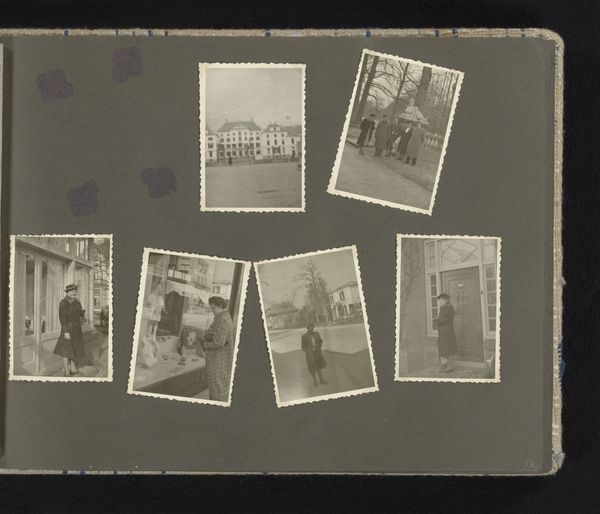 This album page, by an unknown artist, presents a series of photographic portraits, a collection of moments captured and arranged. The sepia tones and varying sizes of the photographs suggest a personal, almost scrapbook-like quality. I’m drawn to the physicality of the album itself. The way the photos are attached and arranged makes me think of painting. The fading and discoloration, the way the images bleed into the background, all add to the work's emotional resonance. The image of the woman with the umbrella on the pier is particularly striking, because the faded edges and soft focus of the print make it feel like it has been painted. The way the light catches the edge of the pier and the way the light filters through the umbrella is so dreamy. This work reminds me of the way Gerhard Richter uses photography as source material, blurring and manipulating images to explore memory and representation. Like Richter's paintings, this album page invites us to reflect on the nature of images and the passage of time. The ambiguity and multiple interpretations of this album page are, to me, its most compelling features.