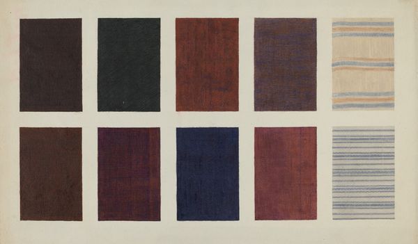 Editor: We’re looking at Robert Mangold's "Untitled (FCPA)" from 1995, a mixed-media work. The muted purple hues and simple geometric shapes create a surprisingly calming effect. How do you approach something that seems so understated? Curator: My initial impulse is to consider the materiality of this "mixed-media". How did Mangold manipulate these materials, likely paper, pigment, and graphite? Look closely. It isn’t about representation but a concern for the labour, and industrial systems in how that pigment achieves its toned presentation. It's an exploration of value isn’t it, through the use and quality of materials used. Editor: I see what you mean. It is more than just colour. The texture is almost fabric-like. Is there significance in choosing such basic shapes? The arch, the bars and the circles feel deliberately ordinary. Curator: Precisely. Mangold is actively rejecting the pretenses of "high art". By focusing on commonplace forms and mass-produced media he challenges the idea of artistic genius, reminding us that art-making involves choices about labour, consumption, and accessibility. The arch echoes architecture but it's really about a deliberate decision to produce rather than represent. Editor: So, the lack of expressive brushstrokes is a deliberate choice? It forces us to consider the work as an object itself, rather than an illusion? Curator: Exactly. Think about how the physical creation – the processes and materials used – defines the meaning as much as, or even more than, any symbolic intention. Editor: That's really changed how I see it. It's not just a simple geometric composition; it's a commentary on art production. Curator: Yes! And perhaps a subtle rebellion against traditional hierarchies within the art world. Editor: I will keep a closer eye to art production to appreciate their intent better.