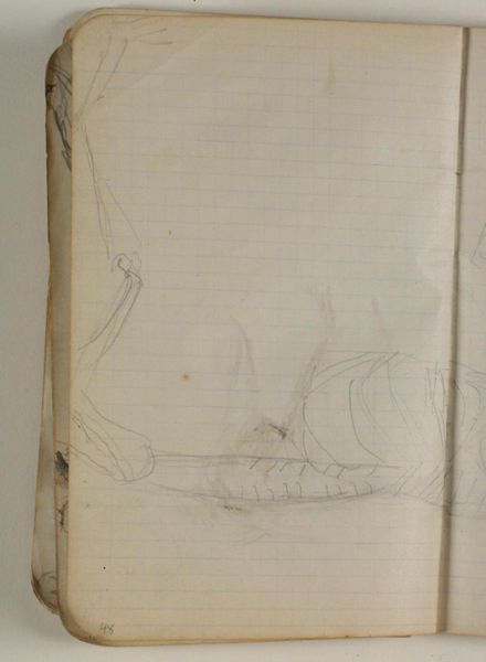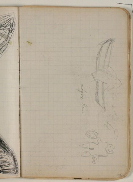 Curator: This is a piece by Niels Larsen Stevns entitled "Halvfigurskitse," which translates to "Half-Figure Sketch," dating from around 1905-1907. It's a delicate drawing in pencil. What's your first impression? Editor: Ghostly. The pencil lines are so faint, it looks like a barely-there apparition on the gridded page of what seems to be a notepad. It's intriguing how little is actually *there,* yet it suggests a figure. Curator: Precisely. These quick sketches offer a unique window into Stevns’s artistic process. I find these unfinished figures more telling, perhaps. The image carries the energy and intimacy of something that shouldn't have been shown at all, offering us something of an unguarded look. The face is slightly obscured by the sketch marks implying rapid movements. There are layers of cultural understanding embedded here, like a subconscious peek into his portrait. Editor: It certainly provokes thought. I'm interested in how the artist uses the inherent structure of the gridded page. Usually, graph paper serves as a tool for precision, for measured renderings. But here, Stevns uses it almost to undermine realism. The loose, organic lines of the figure play against the rigid geometry of the grid, creating a beautiful tension. Curator: That grid, it adds another layer of meaning. Is it a cage? A frame for something alive? This kind of fragmentation also mirrors the psychological perception, which can also be experienced in fractured layers. We carry cultural memory embedded within the sketch. The unfinished element creates a sense of lingering questions. Editor: The choice of such a modest medium—pencil on paper—further enhances the sense of intimacy. There is nothing bombastic, no bold pronouncements. Instead, it’s a quiet, almost furtive gesture. That lends it power, I think. It seems this piece is concerned with temporality as well as presence. The choice in rendering brings its own power in suggesting a deeper, almost personal reading. Curator: A potent observation. Well, considering the subtle tension within "Halvfigurskitse," its delicate execution, what is our final impression of the drawing's voice within us today? Editor: I find that I am looking into something intensely private, almost forbidden to view. It is less about completion, and more about the pure and immediate artistic intention, or maybe a meditation captured in pencil on a small squared notepad. A piece not concerned with technical prowess, it finds its beauty within itself.