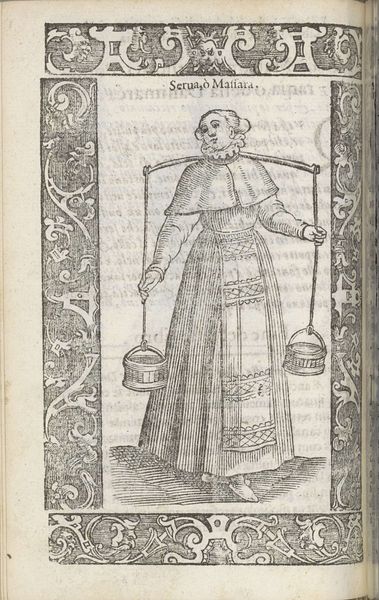 This woodcut, *Contadina trivisana*, was created by Christoph Krieger, showing a woman carrying baskets. The printmaking process is crucial to understanding this image. Krieger used a sharp tool to carve away the areas of a woodblock that would not receive ink, leaving a raised design. This labor-intensive method allowed for the production of multiple identical images. The stark contrast between black ink and white paper emphasizes the woman's form and her burden. The lines are crisp but convey a sense of texture in her clothing and the woven baskets. The act of carving and printing transforms the image into a commentary on labor and class. The woman, likely a peasant, is depicted carrying goods, highlighting her role in the economic system. The print itself, made through a process of skilled labor, exists within a larger network of production and consumption. It reminds us that even art is a product of work. By recognizing the labor embedded in both the subject and the creation of this print, we can challenge traditional distinctions between fine art and craft.
