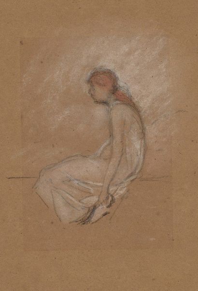 Curator: Here we have Alice Pike Barney’s work, “Fantasy,” rendered in pastel and charcoal. The portrait evokes a palpable sense of intimacy. Editor: Intimacy, yes, and fragility. The texture created by the layering of charcoal and pastel feels delicate, almost ephemeral, as if the image might fade at any moment. One can almost feel the dust of the pigment. Curator: The artist’s expressive handling of line and form are quite remarkable here. Notice how the curves of the subject's neck and shoulder flow seamlessly into the wisps of hair. Semiotically speaking, the averted gaze connotes introspection. Editor: And speaking of those wisps of hair, it makes you wonder what the artist was using and how much of it: Cheap supplies? High-end? Did she struggle to find what she needed, or was she affluent and well-connected? Curator: It presents a fascinating study in tonal contrast as well, doesn't it? Observe the subtle gradations of light and shadow, particularly across the back. They coalesce to create a compelling interplay between luminosity and depth. Editor: That’s a fine point, but I can’t help wondering about the studio conditions—was it drafty, cold? The intimacy you mentioned…did the artist pay the model well or was it transactional, exploitative? These drawings do not emerge from a vacuum; they emerge from real life. Curator: Certainly, we could contextualize the piece socio-historically, but the genius of the drawing resides in its capacity to transcend specific narratives. Editor: But that's where its essence truly lies. The means and circumstances by which art is brought into existence are vital, imbuing the image with greater significance. Curator: I am left admiring how Barney invites contemplation on the very essence of portraiture. Editor: I appreciate the picture more knowing the stories and material circumstances involved in its creation.