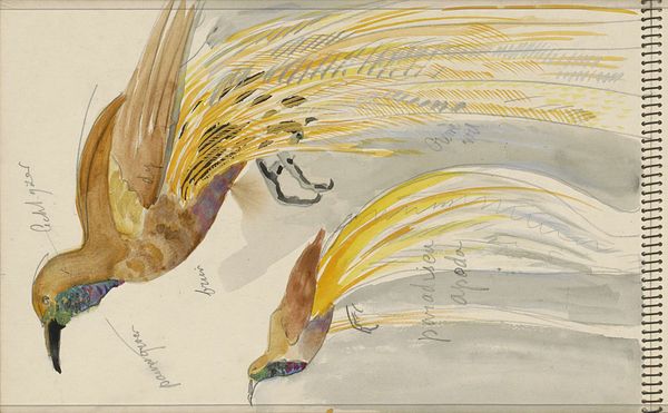 Carel Adolph Lion Cachet made this watercolor drawing of a bird-of-paradise, probably in the late 19th or early 20th century. It's all about process; you can see the artist figuring things out as he goes, mixing these vibrant colours. Look at the head, where the blues and greens bleed into each other. The paint is thin, transparent, like a stain, and it lets the paper breathe. The golden plumes are looser, more gestural. It’s like he’s trying to capture the essence of the bird, not just its likeness. The way he’s made the notes around the bird – it all adds to the sense of discovery. It reminds me a little of Audubon’s bird studies, but with a more personal, almost obsessive touch. It's less about scientific accuracy and more about the sheer joy of looking and recording. To me, that's what makes art so endlessly fascinating - it's a conversation that never really ends.