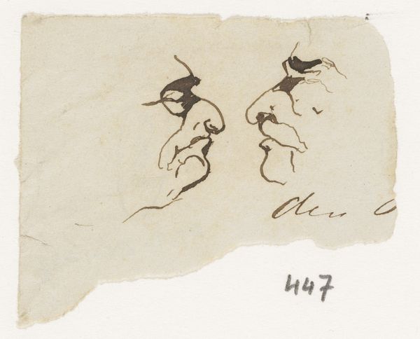 Johannes Tavenraat created "Twee Koppen" on paper with pen in the 19th century. In it, we see two caricature heads, starkly rendered, that provide insight into Dutch society and its artistic conventions. These sketches were likely studies for larger works, reflecting the period's emphasis on preparatory drawings as integral to the artistic process, something that was instilled by the art institutions of the time. The exaggerated features and social commentary found in these "tronies" were a popular way of scrutinizing the values and characteristics of Dutch society. The inscription "Bleek aan Huis Hure" possibly references the economics of the 19th century and the lives of ordinary people. To fully appreciate these sketches, we must explore Dutch art history, 19th-century Dutch society, and the institutions that shaped artistic production. By delving into these resources, we can gain insights into the cultural and societal forces that shaped Tavenraat's art and its capacity to critique and reflect on its own time.
