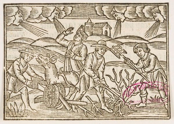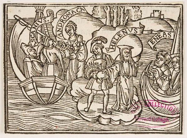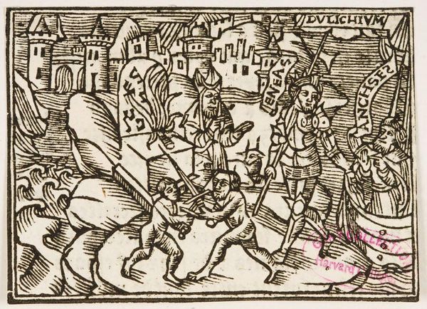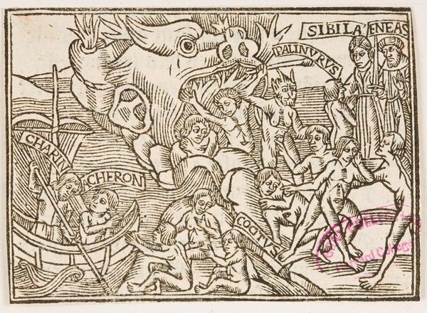 Curator: This is Illustration XXXVII, an anonymous artwork currently residing in the Harvard Art Museums. Editor: It strikes me as a somber procession, starkly rendered, with an almost dreamlike quality to its composition. Curator: Indeed. The linear style, characteristic of woodcuts, emphasizes clarity and narrative. One can discern figures labeled Aeneas, Achates, and others, suggesting a scene from classical literature, likely the Aeneid. Editor: Note how the density of line varies. The artist skillfully employs hatching and cross-hatching to create depth, differentiating the foreground figures from the background landscape. Curator: The social function of such prints in the period was primarily didactic. They offered a visual interpretation of classical texts, making them accessible to a wider audience, fostering a deeper understanding of cultural heritage. Editor: Ultimately, its formal economy belies its rich historical context and the enduring power of the depicted myth. Curator: Precisely. It’s a fascinating example of how visual language served cultural transmission.
