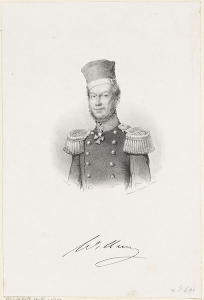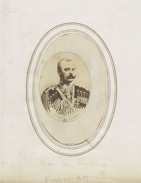 Curator: The stark formality! There's a clear, almost confrontational, sense of authority emanating from this portrait. Editor: Indeed. Let’s take a closer look. This is a photograph titled "Portret van M.E.P.M. markies de MacMahon, maarschalk en president van Frankrijk," or, Portrait of M.E.P.M. Marquis de MacMahon, Marshal and President of France. It was created sometime between 1860 and 1880 by E. Flamant. Curator: The tones are so muted. The light and shadow render an almost palpable sense of age. The materials and their production values indicate much about the time frame too, before photographic reproduction was easy. How would you interpret its effect within the historical context? Editor: As a representation of power in the Second Empire. Think about photography's role in image dissemination. Here was a man shaping French policy, using reproducible technologies for promotion and self-fashioning on a grand scale. Consider the studio, too; it has “Flamant” with the address. These photographic studios played a pivotal role in visualizing social hierarchies, as much as aristocratic paintings did, yet through novel means accessible to the rising bourgeoisie. Curator: A perfect illustration of how photographic processes could become industrialized. These portraits would have been part of that early visual economy of political display and circulation. Think of the albumen prints, the skilled darkroom practitioners, the retouching…a whole new labor system erected to fabricate status! Editor: Exactly! We see the physical presentation being carefully managed. It isn't a spontaneous snapshot but a constructed, public image that helped create MacMahon's position in French history. The gaze is very intentional, presenting the power of the sitter through visual form. Curator: And one can just imagine all the prints circulating… how this photograph contributed to constructing a certain aura, a certain mode of embodying political leadership during a transformative period of media culture. The materiality reflects the context of the photographic apparatus itself, how this one object then gets disseminated into a political-social schema. Editor: Definitely food for thought. For me, this is an important example of the intertwined relationships between photography, politics and history. Curator: And, conversely, a peek into how power presents itself in the midst of photographical making.