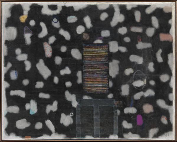 Curator: Howard Hodgkin’s “Dinner at Smith Square” is a riot of color, almost a visual feast, isn't it? Editor: It’s… chaotic. But also strangely comforting, like a half-remembered dream of a party. Curator: Hodgkin often used abstraction to capture the essence of a social encounter or a place. The title gives us a clue; it's not about depicting a dinner realistically but evoking the feeling of one. Editor: All those layers of paint, the way the colours bleed into each other… it's like trying to hold onto a memory as it fades. Was Hodgkin thinking about specific social dynamics, or more about his personal associations? Curator: He was famously private about his intentions, leaving the interpretation to us. But the scale, the intensity... I think it’s meant to envelop you in a sensory experience. Editor: Maybe, and I find it interesting how the heavy frame becomes integrated into the composition. It contains the experience while also emphasizing its artificiality, right? I’m left contemplating the relationship between memory, emotion, and how paintings help us feel and think. Curator: Precisely. Hodgkin offers an opening, not a conclusion. I leave with a sense of a fleeting moment captured, and that is lovely.