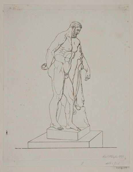 Vincenzo Camuccini created this pen drawing, "Statue of Caesar as a Divinity," to render the male figure in muted blues. The formal composition, with its subtle lines, evokes a sense of classical idealism. The figure stands on a base, draped fabric across his torso, and this use of line and form is intended to convey divinity. Note how the lines create a sense of depth and volume, and the play of light and shadow across the figure. Here, Camuccini engages with a long tradition of representing power through form, echoing classical sculptures. Yet, the drawing’s delicate lines suggest a fragility, destabilizing the firm assertion of power. Consider how Camuccini uses the medium's inherent qualities to invite ongoing interpretation rather than fixed meaning.