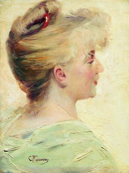 Curator: Pierre-Auguste Renoir's "Reading," painted around 1892, presents a serene profile of a young woman absorbed in her book. What's your first take? Editor: There's a definite tranquility. The hazy, dreamlike quality, typical of impressionism, makes it feel intimate. A very personal moment, sealed off from the outside world. Curator: I see it that way, too. But how does Renoir’s choice of subject—a young, probably bourgeois, woman engaging with text—play into late 19th-century concepts around female education and leisure? Was this freedom equally afforded to women across socioeconomic lines? Editor: That's an important point. It's easy to get swept away by the prettiness without acknowledging the privileged position it represents. The act of reading, a marker of status and education, emphasizes the gap between her opportunities and those of, say, working-class women. Curator: Exactly! We can consider it in the context of increased literacy among women and growing debates around women's intellectual capabilities. How does the imagery surrounding female literacy contribute to, or challenge, these narratives? And how does this piece perform relative to the institutional trends? Editor: And if we consider how paintings like this were consumed, displayed in bourgeois homes…they reinforced existing social structures. A gentle reminder of who gets to enjoy leisure, beauty, and intellectual pursuits. The setting is anonymous and doesn't betray the status and cultural location, doesn't it? Curator: Absolutely. Renoir's technique—the loose brushstrokes, the soft light—almost obscures those sharp class divisions. Editor: The softness definitely idealizes and romanticizes. It perhaps even depoliticizes. A lovely surface that can unintentionally conceal complicated truths. Curator: Well, it serves as a poignant reminder of how deeply intertwined art is with social and political realities. Editor: Indeed, revealing how artistic expression, even in seemingly simple scenes, always carries layers of historical meaning and implication.
