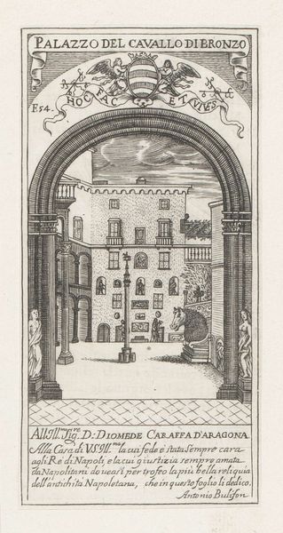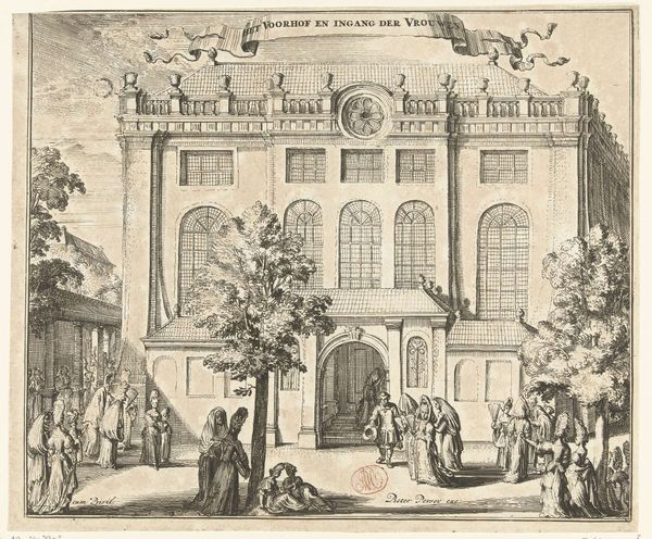 Curator: Here we have Giovanni Battista Falda’s "Fontein bij de Ponte Sisto te Rome," created sometime between 1653 and 1691. This engraving captures a cityscape with architectural precision. What strikes you first? Editor: Its austere quality is immediately evident. The linear precision creates a very structured composition and evokes a formal tone. It looks almost like a blueprint. Curator: Precisely! Note how the very materiality of engraving—the deliberate tooling and labor—conveys the ambitions of papal infrastructure projects and urban planning during that period in Rome. This fountain would have impacted the water distribution networks that influenced where people could live and conduct business. Editor: Yes, and the composition leads the eye directly to the fountain as the central point of interest; note its symmetrical construction and the clean lines that draw attention to its shape and its function. Curator: Look closely and observe the everyday life unfolding around the fountain; see how it subtly speaks volumes about access to resources and its societal impacts at the time. Also notice that Falda signed the engraving, highlighting his role as a skilled worker reproducing the images and ideas of powerful people. Editor: I agree. Furthermore, this precision showcases not just technical ability, but also implies the stability, order, and grandeur that the Catholic Church sought to project. Curator: By framing architecture in the everyday environment, this cityscape provides a glimpse into both its function and its effect on local economies and social interactions. Consider the figures around the fountain - their access or lack of access, becomes part of a social statement. Editor: A valid point. Through examining line, symmetry, and the calculated arrangement of forms, this engraving reveals aspirations to grandeur and order. Ultimately it uses the materials and form to convey an image of timeless power. Curator: Indeed, thinking about the cost of engraving versus other cheaper methods gives clues about why the chosen means matters just as much as what it portrays! Editor: Thinking about the materials involved allows us to think more about how architectural forms can reflect a quest for an ideal and what they aimed to achieve. Thank you for this additional context, it really has provided food for thought.