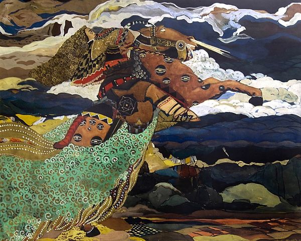 Ivan Milev painted 'Kidnapping' using tempera, watercolor, and Indian ink, capturing a scene ripe with cultural tension. It invites us to consider the status of women in Bulgarian society, a theme deeply embedded in the region's folklore and customs. The artwork’s visual codes create meaning by referencing specific cultural and historical associations. Milev painted this in Bulgaria, likely in the 1920s. Here, traditional practices, including arranged marriages and even bride kidnappings, placed women in a complex social position. The artwork could be a commentary on these prevailing social structures, using a stylized scene to critique the lack of agency afforded to women. To truly understand Milev’s intent, we might turn to resources that document the social and cultural norms of Bulgaria during the interwar period, or the cultural context of folklore, understanding that the meaning of art is always contingent on its specific social and institutional environment.