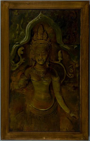 This hanging scroll depicting a Buddha seated on a lotus throne was created by Jiang Jun, using ink and color on silk. The artist's choice of materials, particularly the silk support, gives the painting a distinctive character. Silk, a prized material in Chinese art, lends a smooth, absorbent surface ideal for ink and delicate color washes. The process of preparing the silk, stretching it taut on a frame, and then applying layers of ink requires patience and precision. The visual texture comes from the contrast of ink and silk, setting off the gold highlights. Consider too the social context of silk production – an industry reliant on skilled labor. The making of this painting extends beyond the artist's hand, connecting to broader networks of production and consumption. Recognizing the value of materials and processes allows us to understand the full meaning of the work.