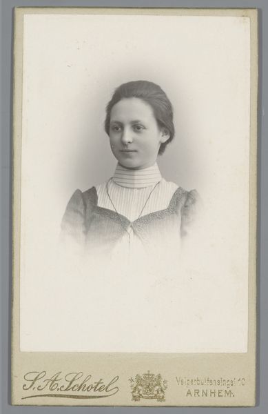 Richard Kerkhoven’s portrait of an unknown girl captures the essence of a bygone era through the lens of early photography. The photograph is characterized by its muted sepia tones, giving it a soft, almost dreamlike quality. The composition is simple yet effective: the girl's face is centrally positioned, drawing our eyes immediately to her gaze, which is direct and contemplative. The formal arrangement encourages the viewer to consider the subject's inner world, framed as it is by the structured conventions of portraiture. Notice how the monochromatic palette flattens the depth of field, emphasizing texture and form over vibrant color. This technique, prevalent in early photography, invites us to consider the photograph not just as a representation but as an object in itself, a relic imbued with the passage of time. What does it tell us about the cultural codes of representation and identity during the late 19th century?