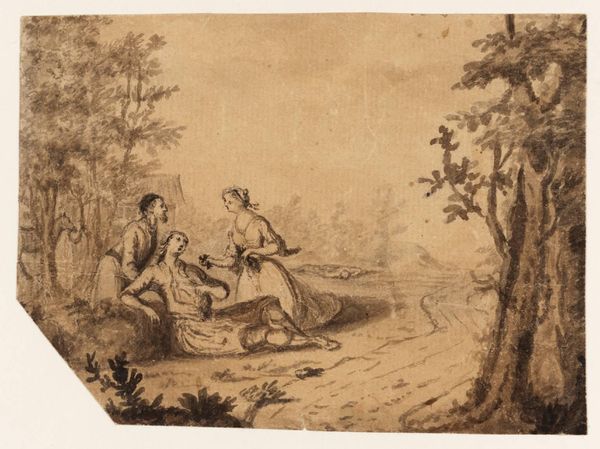 Francesco Bartolozzi created this print titled 'July' sometime between 1728 and 1815. It presents an idyllic scene of rural life, but it is far from a straightforward depiction of labor. The figures, seemingly engaged in sheep shearing, are rendered with a softness and grace that elevates them beyond mere workers. The women, with their delicate features and poised demeanors, appear to be more like shepherdesses from a pastoral poem than laborers toiling in the fields. This idealized representation speaks volumes about the social and cultural context in which Bartolozzi was working. The late 18th century was a period of both romanticizing and distancing from rural life among the elite. Prints like these offered a sanitized, picturesque view of the countryside, conveniently omitting the harsh realities faced by the working class. Here, the labor is aestheticized, transforming work into a charming tableau that speaks more to the desires and fantasies of the privileged than the realities of rural existence. The image invites us to consider the narratives that are constructed and the voices that are often left unheard.