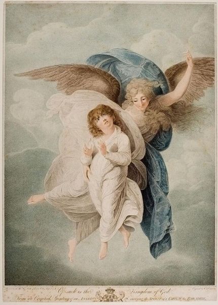Curator: "The Guardian Angel," a painting rendered in 1656 by Pietro da Cortona, graces the walls here at the National Gallery of Ancient Art in Rome. It's a poignant depiction executed in oil paint. Editor: It strikes me immediately as being deeply unsettling. There's this tension between the sweetness of the subject and an underlying current of anxiety. The child looks vulnerable, and while the angel offers protection, there's a looming darkness in the lower background figures and overall sense of unease created by the colors and contrast. Curator: Absolutely, that dichotomy is central to understanding the piece. The figures here intertwine motifs of Christian guardianship with Baroque sensibilities, that prevalent visual culture of Rome during this time, the period that shapes Cortona's unique imagery of form and movement. This work blends figuration with the underlying mythology that echoes ancient Greco-Roman visual representation that many Baroque painters favored. Editor: Let’s not ignore the socio-political contexts though, it isn't merely about faith. Considering the time, think of the power dynamics inherent in that protective stance. The angel, coded as divine and inherently superior, 'guides' a child and its implications for a world rife with inequity. Does this divine "protection" unintentionally echo a rhetoric of control, subtly mirroring historical justifications for oppression disguised as care? The fact that below there are people flailing helplessly only compounds that sentiment. Curator: That's a very compelling point. However, look at the positioning: the angel isn’t forcefully dragging, but gently leading with the implication of freedom of will for the protected. The light, inarguably, rests more clearly on the angel and child; such placement invites, through symbols, reassurance found in divine protection and is a comforting, even welcome idea. The figures writhing in darkness below are the hazards that most of humanity might face. The angel shields against it. Editor: But it’s precisely this "protection" we must critically examine, who defines the "hazards," and to whose benefit is this structure upheld? Curator: Fair, yet regardless of interpretive disagreements, the core, enduring draw is, at minimum, in its image power that evokes our relationship to hope and our need for guardianship when lost, a feeling that still powerfully speaks. Editor: Agreed. Regardless of whether one sees it as reassurance or indictment, the painting incites that visceral contemplation, making it an important point of departure when viewing our relationship with institutions.