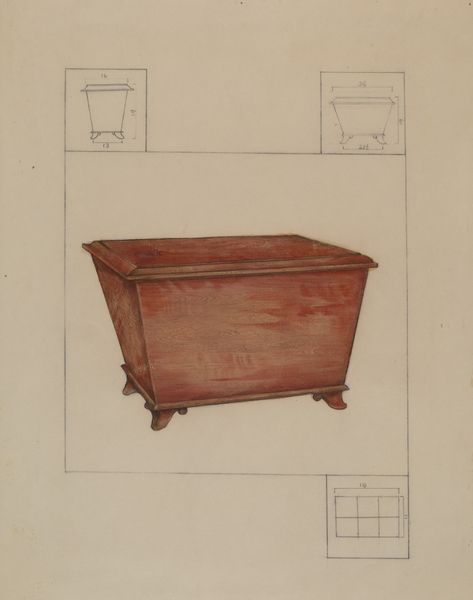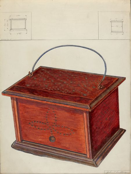 Henry Meyers made this drawing of a cedar chest, date unknown, on what looks like regular paper. It’s like a technical drawing, but also kind of dreamy. The color palette is mostly warm browns, creams, and beiges, creating a sense of naturalness. Meyers paid such close attention to the wood grain, capturing every little detail. You can almost feel the texture, like running your hand over a well-worn piece of furniture. The paint is thin and transparent, allowing the paper to peek through. The brushstrokes are delicate, and you can sense that it’s built up in layers. The hardware is rendered with almost geometric precision, adding a kind of industrial feel. It reminds me a bit of some of the Shaker drawings, with their focus on utility and simplicity. But Meyers brings a bit more of a folk art sensibility to the table, imbuing this simple chest with a whole lot of charm. It makes you think about all the stories a cedar chest could hold, and how everyday objects can become vessels of memory.