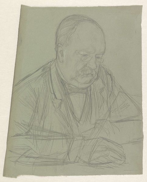 This is a pencil self-portrait by Paul Cézanne, measuring 49 by 29.4 cm. The sketch presents a contemplative figure, constructed through a network of delicate, yet assertive lines. Cézanne’s gaze is cast downward, his hand thoughtfully placed against his face. The composition, while appearing conventional in its subject matter, reveals Cézanne's departure from traditional portraiture. The lines are not merely descriptive; they build volume, explore spatial relationships, and investigate the interplay of light and shadow. Note how the hatching defines form, particularly in the planes of the face and the contours of the hand. The structure is paramount. Cézanne uses line to map out the underlying geometry of his own form, reducing it to essential shapes. This reduction is not just a visual technique, but an early exploration of abstraction. In this way, the self-portrait anticipates his later landscapes and still lifes, where objects are fragmented and reassembled to challenge fixed perspectives.