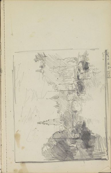 Cornelis Vreedenburgh made this landscape drawing, titled “Gezicht op een dorp met een kerktoren”, with graphite on paper. It’s a sketch, really, a quick study of a village dominated by the spire of a church, and it shows how much can be conveyed with very little. Look at the repeated marks, especially around the lower half of the building. They are like scribbles but also intentional, mapping a kind of visual shorthand for texture. See how the hatching gives a sense of depth, but also flattens out again? I love that push and pull. There’s a looseness that captures the essence of the subject without getting bogged down in details. The drawing feels so immediate, so direct. The marks build up a subtle, almost ghostly image. It reminds me a bit of Guston’s loose, atmospheric drawings. Ultimately, it’s about the process, the artist thinking through the act of drawing itself.