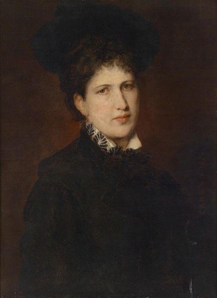 This is William Bouguereau's "Portrait of Miss Elizabeth Gardner," painted with oil on canvas. Bouguereau was a master of academic painting, renowned for his hyper-realistic and idealized depictions of the human form. Here, the focus is on capturing the likeness and social standing of Miss Gardner, evident in the fineness of her garments. The lace collar and brooch are rendered with incredible precision, showcasing the artist's technical skill. This level of detail not only reflects Bouguereau's artistic talent, but also speaks to the labor-intensive processes involved in producing such intricate textiles. Consider the countless hours of work required to create such delicate ornamentation, a stark contrast to the ease with which it is depicted on canvas. Ultimately, this portrait invites us to consider the relationship between artistic representation, social status, and the often unseen labor that underpins the visible world.