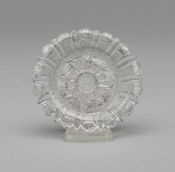 This anonymous cup plate is made of glass and features a prominent star motif at its center. In many cultures, the star has been a potent symbol, representing guidance, divinity, and the celestial realm. Consider the Star of Bethlehem, which guided the Magi, or the stars adorning the robes of celestial deities in various traditions. One can trace this motif back to ancient Mesopotamian art, where stars symbolized divine power and destiny. Yet, here, the star is pressed into glass, a material often associated with clarity and fragility, like fleeting moments of insight. What was once a symbol of transcendence is now part of an everyday object. Its cyclical journey from the heavens to the domestic sphere shows how symbols evolve, adapting to new contexts while still echoing ancient meanings in our collective memory.