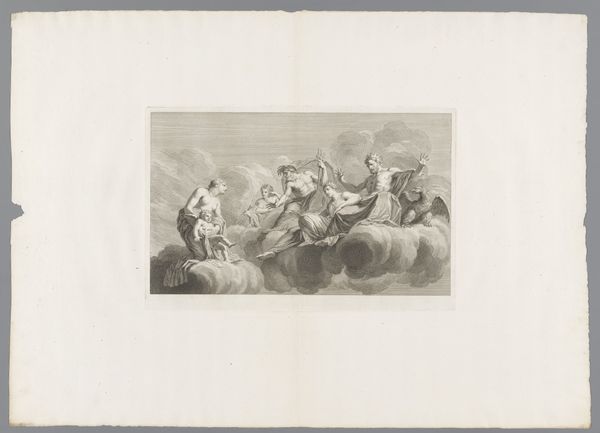 Boëtius Adamsz. Bolswert created this print, Verkondiging aan de herders, using engraving techniques. The image depicts shepherds receiving the announcement of Christ's birth, set against a backdrop of a common rural scene. Consider how religion and art intersect to elevate the everyday lives of common people. The shepherds, typically figures of humble status, are cast in a divine narrative. Bolswert lived during the height of the Dutch Golden Age, a period marked by significant social and political changes. His work creates an intimate portrayal of faith intertwined with the realities of daily existence. Notice the expressions of awe and wonder on the faces of the shepherds. The beams of light pierce through the natural darkness of the scene, illuminating not just the figures but also the potential for divine encounters in our own lives. The raw emotionality and accessible setting underscores the idea that spirituality isn't confined to grand cathedrals or the elite, but is accessible to all, regardless of station.