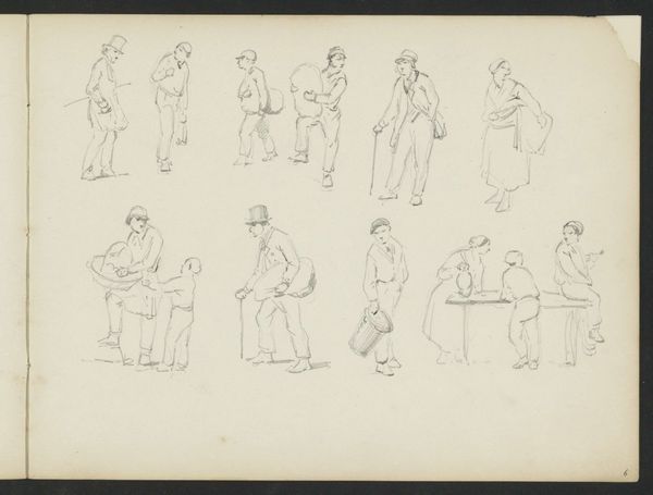Adrianus Eversen rendered this sketch, titled "Figurengroepen," using graphite on paper; the date is not known. Eversen, who lived in the 19th century, witnessed profound shifts in European society, including rapid urbanization and industrialization, which drastically altered social structures and daily life. In this sketch, we see glimpses of this evolving society through its figures. The composition captures the nuances of class distinctions, evident in the varied attire and activities of the subjects. While some figures appear to be engaged in labor, others are seen in more leisurely poses, possibly representing the emerging middle class. The artist's focus on the collective experience, rather than individual portraits, suggests an interest in the broader social dynamics of his time. This piece invites us to reflect on the past and consider how far we've come in addressing disparities and promoting equity within our own communities. What does it tell us about a society that continues to grapple with questions of labor, leisure, and social equity?