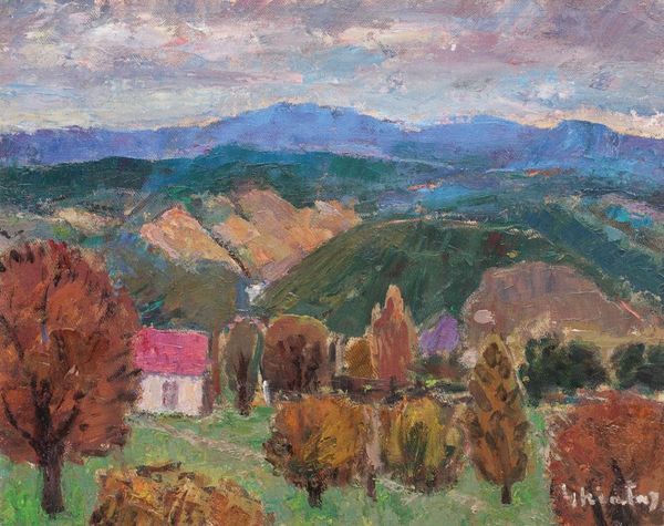 Egon Schiele made this small landscape in Lower Austria, with oil on canvas, sometime before 1918. Schiele uses these really direct strokes, almost like he's knitting the fields together, stitch by stitch. The paint isn't shy; you can feel the drag of the brush, the way the bristles loaded with color have a conversation with the canvas. Look at how he builds those fields—horizontal stripes, greens and yellows, pulled across the surface, one after the other. There's a certain immediacy to it, a sense of urgency, like he's trying to catch something fleeting. It reminds me of some of Gustav Klimt's landscapes, but rougher. Schiele wasn't trying to make it perfect; he's showing us the raw energy of seeing, the act of painting itself. It is more about gesture than a perfect copy of a place.