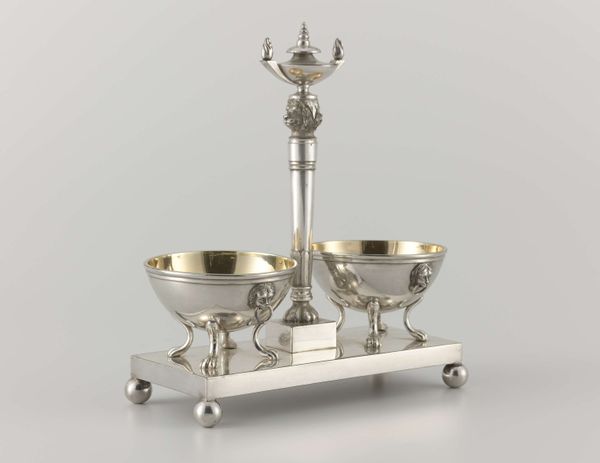 This silver inkstand, crafted by Laurens Potmans, features pear and pumpkin-shaped vessels, a celebration of nature's bounty transformed into objects of utility and beauty. The pear, often a symbol of abundance and fertility, takes center stage here, crowned with a delicate, blossoming sprig. Consider the persistent presence of fruit motifs throughout art history. From the opulent still lifes of the Dutch Golden Age to the symbolic fruit in Renaissance paintings, they recur as emblems of earthly pleasures, vanitas, and even, in religious contexts, temptation. Observe how the pumpkin forms echo ancient gourd-like vessels, hinting at alchemical and transformative processes. The choice of these forms, laden with symbolic weight, invites us to contemplate the cyclical nature of life and the enduring power of symbols to transcend time, reminding us that these forms, like the written word they accompany, carry layers of meaning far beyond their practical function.