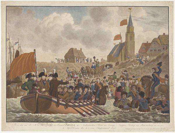 Thomas Rowlandson made this watercolor drawing, *View of Prizes Taken by Lord Howe Coming in Portsmouth*, using pen and ink for the lines, and washes of diluted pigment to create tone and shading. These were traditional techniques at the time, embraced for their portability and capacity for capturing scenes quickly. Rowlandson’s skill comes through in his rendering of the crowd gathered to celebrate the arrival of captured ships. Note the frenetic energy achieved with just a few strokes of the pen. This would have been familiar subject matter to the artist’s audience, who consumed prints and drawings as a form of news and social commentary. However, while the drawing celebrates British naval power, we might also reflect on the cost of these victories, both in human and economic terms. The ships themselves are products of immense labor, requiring skilled craftsmanship in woodworking, metalworking, and sailmaking. War, of course, fueled the burgeoning industries of the 18th century, yet the drawing offers little acknowledgement of the processes of extraction and making on which it depended. Rowlandson’s light touch belies the heavy realities of imperial ambition.