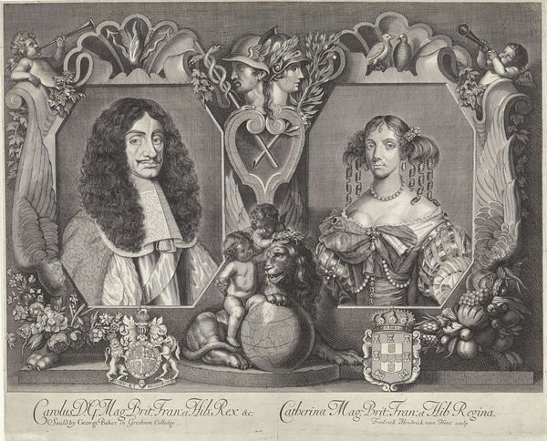 Editor: This is a double portrait from 1735 titled "Portraits of Canaletto and Visentini," an engraving. The level of detail achieved using this technique is astonishing. What's particularly striking to me is how each portrait seems to capture something essential about each man's character. What do you see when you look at this image? Curator: I see a fascinating intersection of art, commerce, and intellectual exchange in 18th-century Venice. This print wasn't just a representation of two artists; it was a strategic statement about their roles in shaping the Venetian image for a European audience. Consider how the elaborate frame and allegorical elements elevate these figures, placing them within a classical, almost heroic context. Who benefits from this glorification? Editor: Well, both artists certainly benefit from having their reputations enhanced. Canaletto was renowned for his views of Venice. Visentini, from my understanding, was an architect and engraver. How does that influence your interpretation? Curator: Precisely. Visentini disseminated Canaletto's vision through prints like these. This collaborative reproduction allowed the city's imagery to circulate, impacting not just artistic tastes but also travel and tourism trends of the era. We should ask ourselves how the representation of these men through visual media serves a very particular social and political agenda. Were they consciously marketing Venice and themselves to specific European power structures, thereby influencing perception and potentially wealth distribution? Editor: So it’s about controlling the narrative and benefiting from the associated influence? Curator: In a sense, yes. This portrait isn't merely an image; it's a document of cultural production and social power at play in 18th-century Venice, reflecting and perpetuating ideas about nationhood, artistry, and trade. Thinking about whose stories are being told here, and through whose lens, gives us a rich insight into that period. Editor: That definitely provides a new, critical framework for understanding this seemingly simple portrait. Thanks for broadening my perspective. Curator: My pleasure! Looking beneath the surface of the aesthetic to unearth the layered social commentary is key to really unlocking these works.