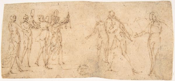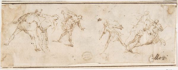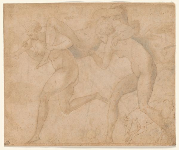 This is John Singleton Copley’s Study for "The Death of Major Peirson": Group of Dying French Officers, a drawing rendered in graphite on paper. Copley, an American then living in London, made this study for his painting depicting a scene from the Battle of Jersey in 1781. Though Copley was American, he spent much of his career catering to British tastes, particularly for scenes of military valor. This study, focusing on dying French officers, hints at the complexities of representing warfare and defeat. The sketch captures the moment of collapse, evoking a sense of vulnerability and loss, disrupting conventional portrayals of the battlefield. How might Copley, as an American artist working in Britain, have felt portraying the death of French soldiers, enemies of the British? The dying figures challenge the traditional narratives of heroism, inviting viewers to reflect on the human cost of conflict. There's a quiet emotional charge in the artist’s delicate lines.