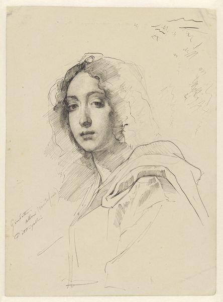Editor: So, this is Edgar Degas' "Woman in a Ruffled Cap (Dame âgée)," created around 1859-1860, using graphite, ink, and etching techniques. I'm struck by the intense gaze of the woman and how Degas captured it with such minimal lines. What do you see in this piece? Curator: Beyond the surface, I see a statement on aging and representation. In 19th-century art, older women were often relegated to the background or portrayed through stereotypical lenses. But here, Degas offers us an intimate, unvarnished portrayal. Notice how the etching allows for a depth of shadow that accentuates the lines on her face. Editor: It’s interesting that you point that out. I wouldn’t have thought of it, but there’s something quite direct and almost challenging in her gaze. How do you think this relates to other portrayals of women in art during that time? Curator: Many portraits of women were heavily idealized, intended for a male gaze within a patriarchal framework. By depicting this woman with such frankness, Degas subtly challenges that tradition. He invites the viewer to consider the lives and experiences of women beyond youthful beauty. Who was she? What stories could she tell? The medium of etching itself allows for a raw honesty, unlike the polished surfaces of academic painting. Editor: So, by focusing on her age, Degas is pushing back against the norms of the time? Curator: Precisely. And it invites us to reflect on how societal beauty standards continue to marginalize and erase older women. This piece becomes an act of visibility, of resistance against those erasures. It asks us to actively re-see and re-value aging and female experience. Editor: That’s a powerful perspective! I'm definitely seeing this artwork in a completely new light. It’s much more subversive than I initially realized. Curator: Art has the potential to be so much more than just aesthetics; it’s a conversation across time, engaging with socio-political realities. Hopefully we both have expanded on each other’s viewing lens.