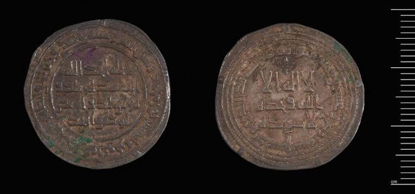 Editor: Here we have the Dirham of Al-Walid I from Damascus. Given its wear, I find it incredible that something so small and unassuming could have played a role in such vast economic and social exchanges. What stands out to you? Curator: It's fascinating to consider the material transformation involved. Silver, extracted and refined, then imprinted with symbols of power and faith. It represents a complex network of labor and resource management under Al-Walid I. Editor: So, you're saying its value isn't just monetary, but also in what it tells us about the Ummayyad Caliphate's operations? Curator: Precisely! The coin embodies the state's material control and ideological reach. Consider also how this object facilitated not just trade but the very spread of ideas. Editor: I hadn’t considered that. Thank you! Curator: My pleasure! It encourages us to look beyond the surface.