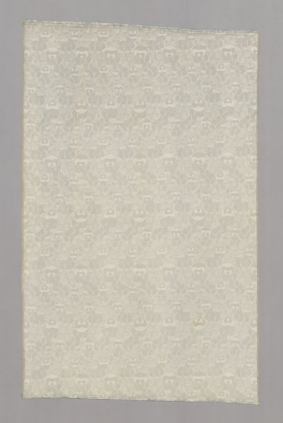 This sheet presents an overall pattern of stars inside ovals on textile. Immediately, one notices the rhythmic repetition of the design, creating a visual field that is both ordered and hypnotic. The stark contrast between the dark ovals and the light stars against a neutral background intensifies the pattern's impact. The anonymous creator utilizes simple geometric shapes – ovals and star-like figures – to construct a complex, all-over composition. This design could be viewed through the lens of structuralism, where the underlying structure dictates the surface appearance. The consistent application of these shapes speaks to a deeper semiotic system; each element serves as a sign, contributing to the overall message and aesthetic. This repetition creates a sense of infinity. Ultimately, this sheet challenges the traditional art object by prioritizing pattern and repetition over individual expression. This piece invites us to reconsider the boundaries between art, design, and the decorative arts.